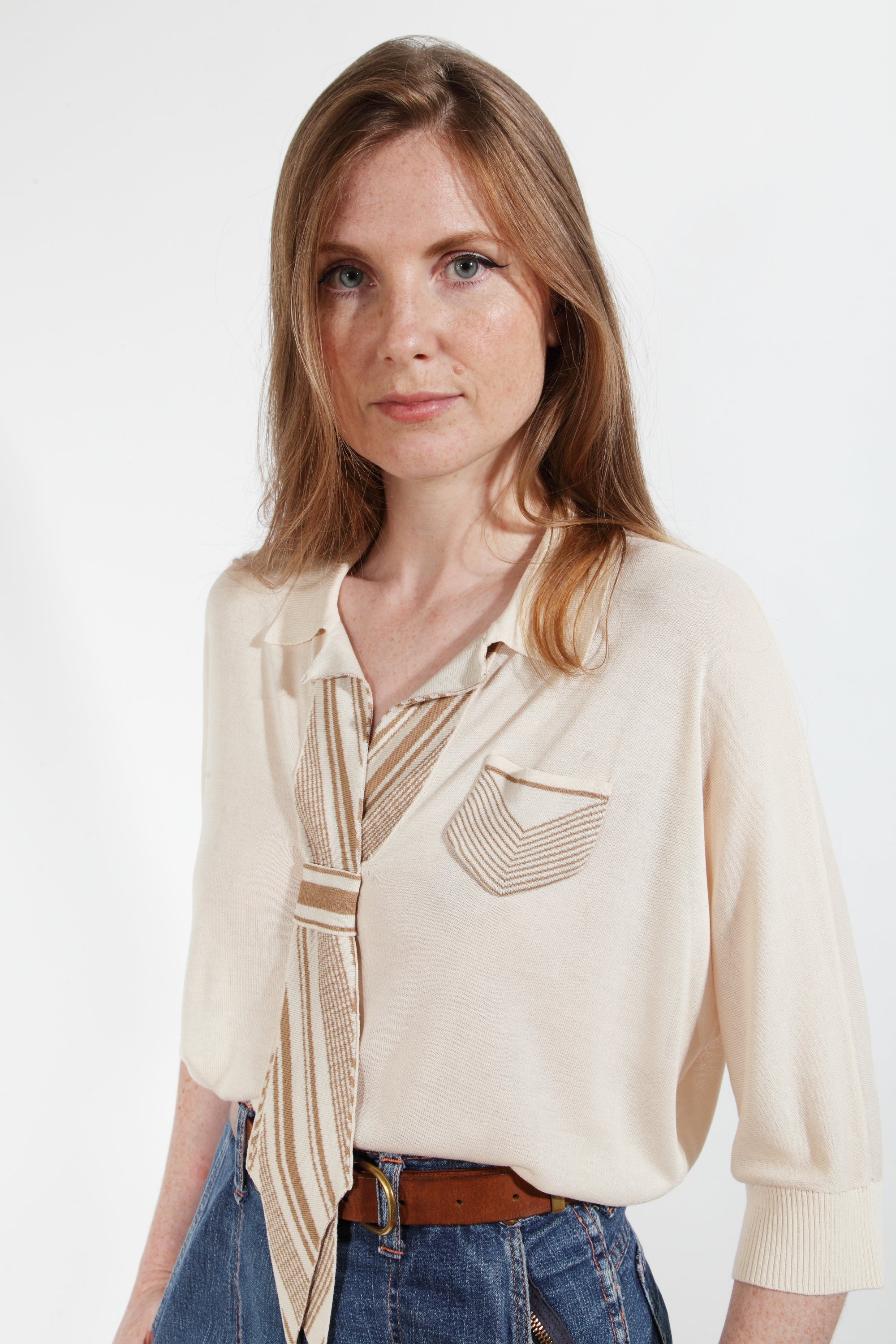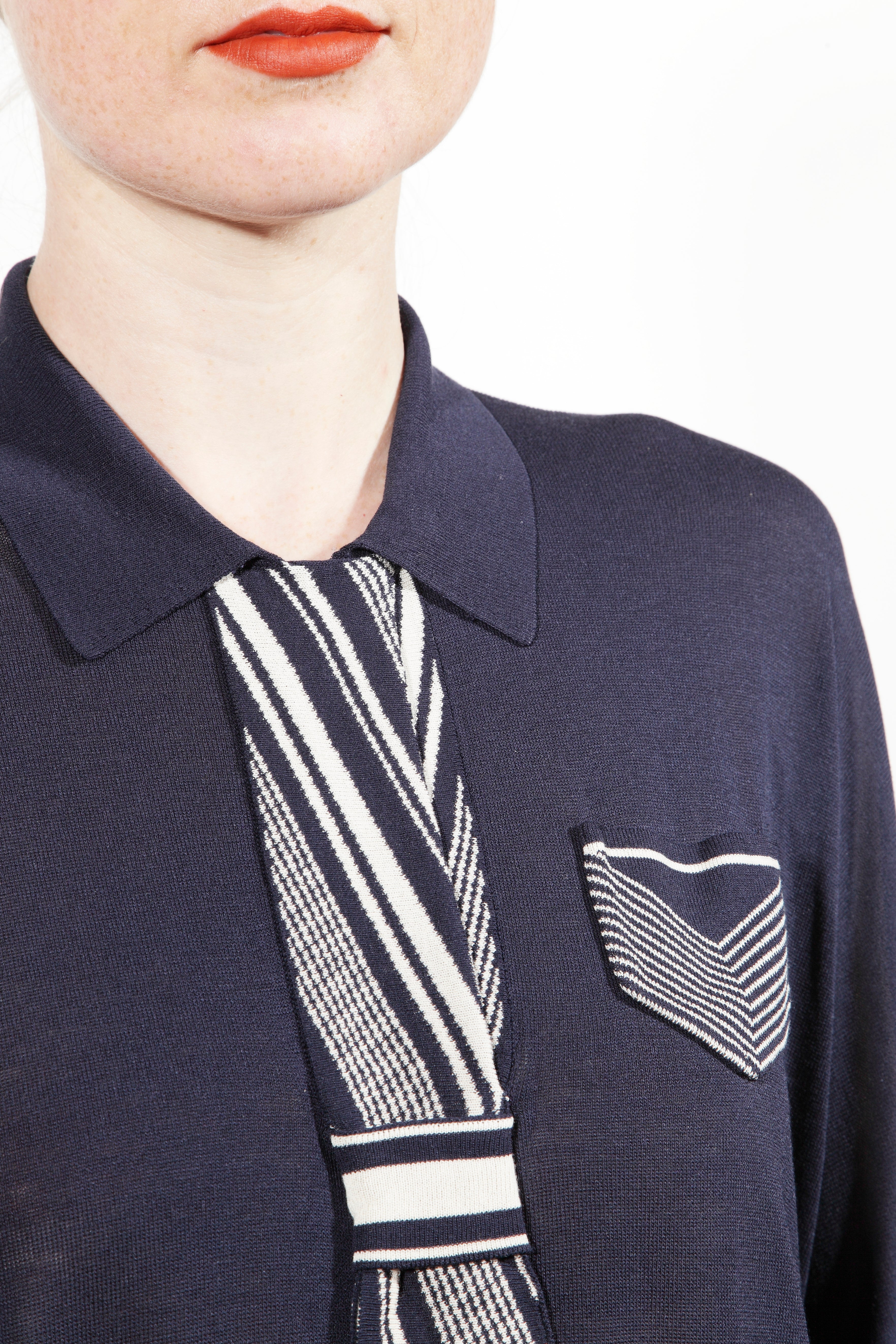 You have both options with the Eton blouse, our superfine knit inspired by 1920s Etonian schoolboy elegance, as this can be worn tucked in, or loose & flowing, closed up at the neckline, or relaxed & open.