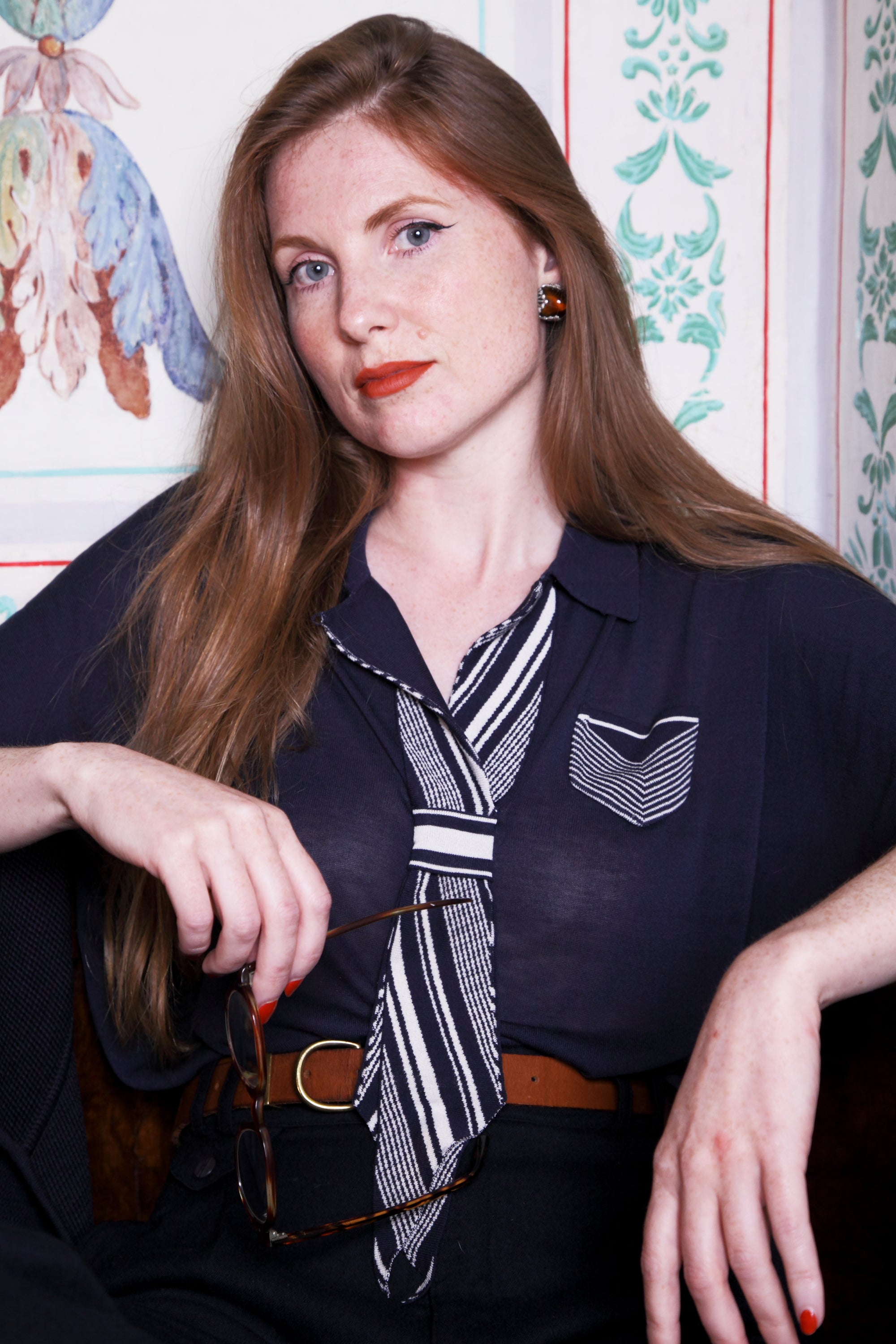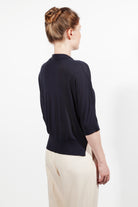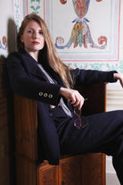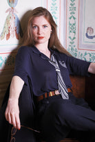 You have both options with the Eton blouse, in our darker first drop colourway, a superfine knit inspired by 1920s Etonian schoolboy elegance, as this can be worn tucked in, or loose & flowing, closed up at the neckline, or relaxed & open.