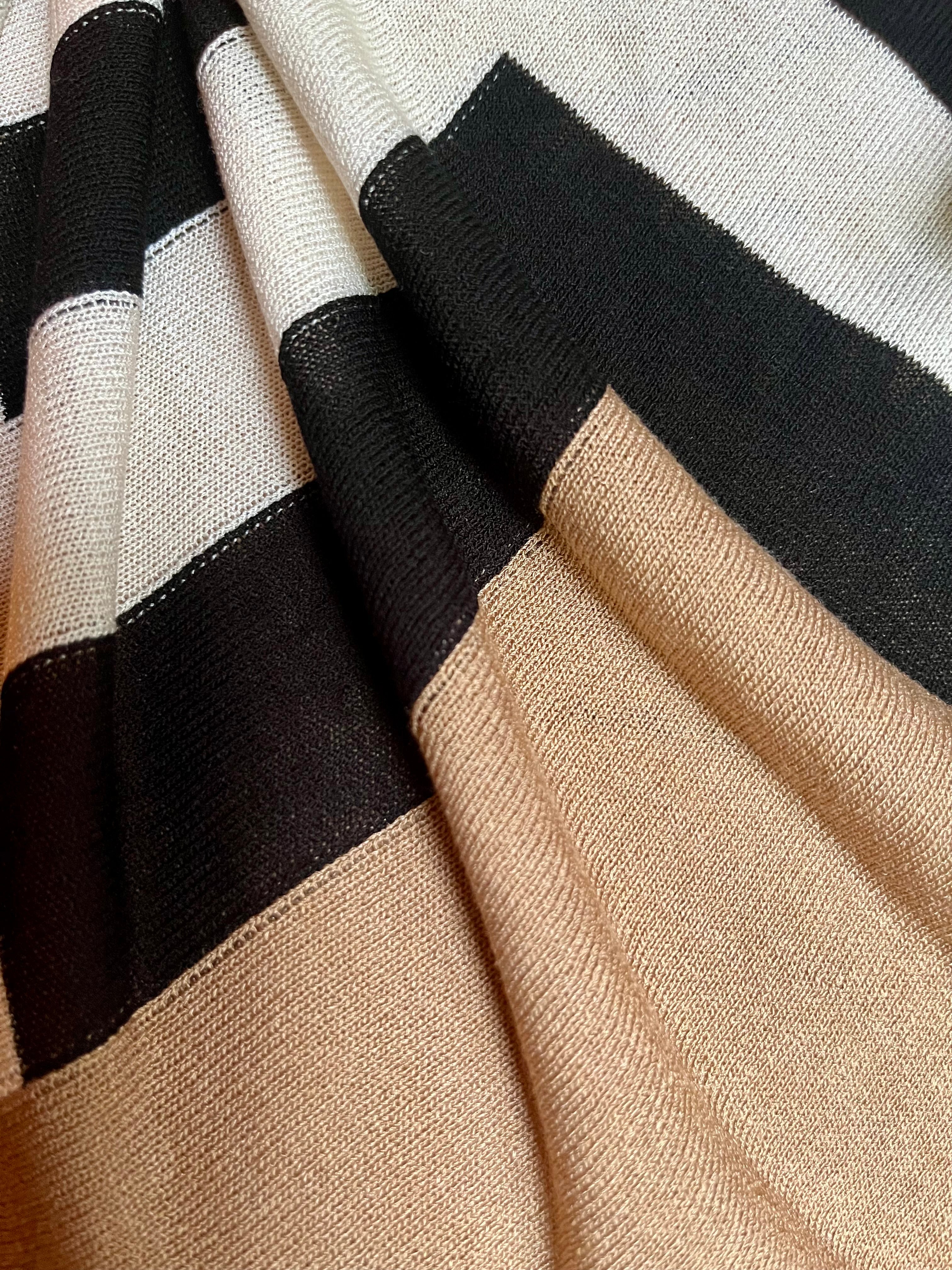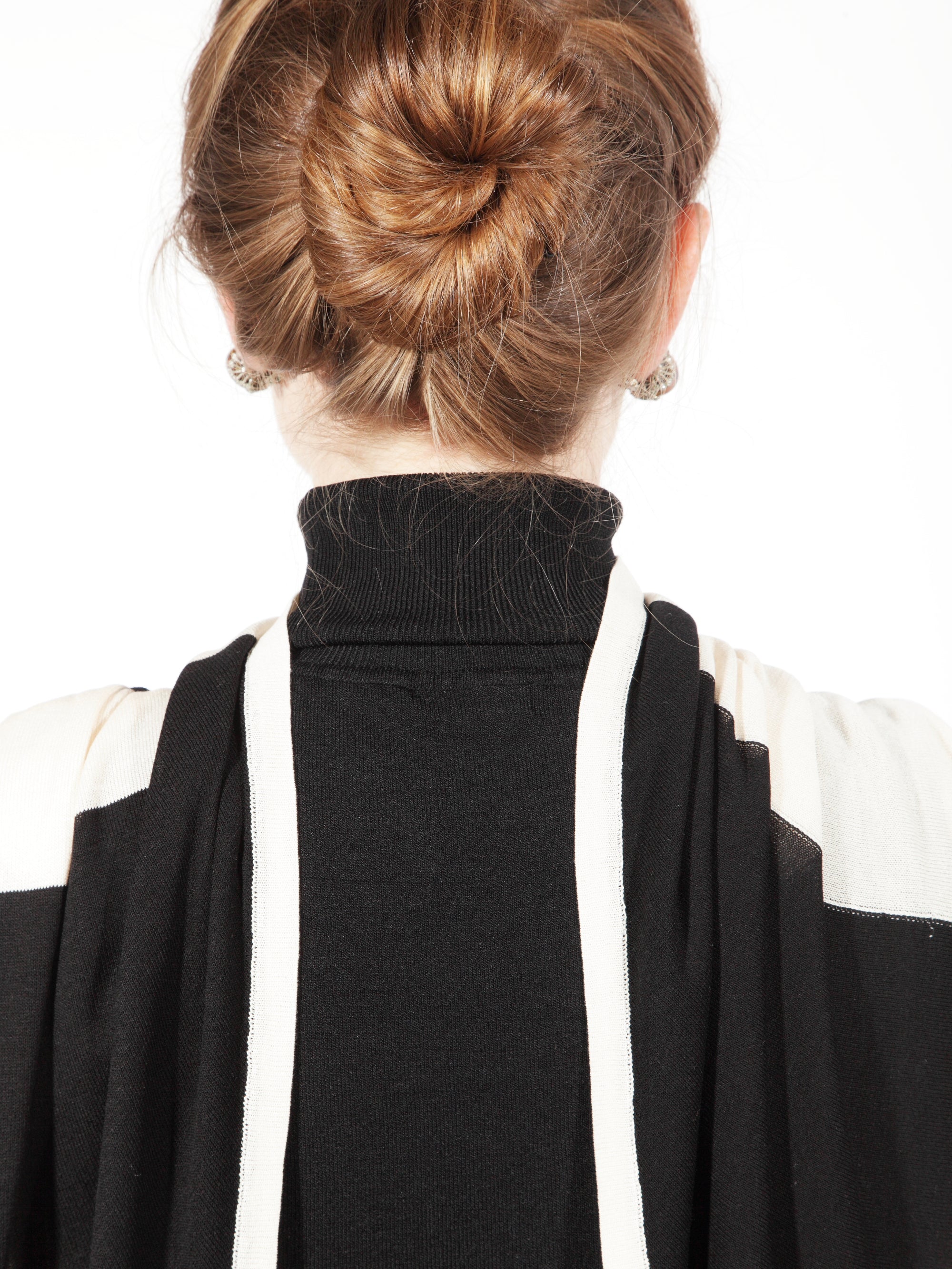 Here we have paired it with a classic sleeveless black roll neck, and you will see that we have also styled it over the Elsa top for added graphic impact.